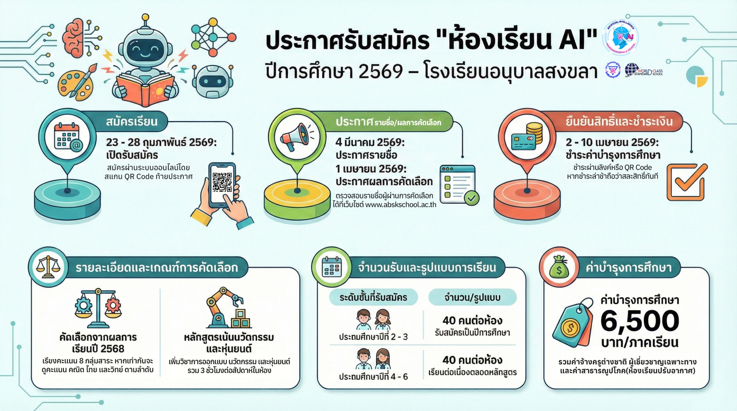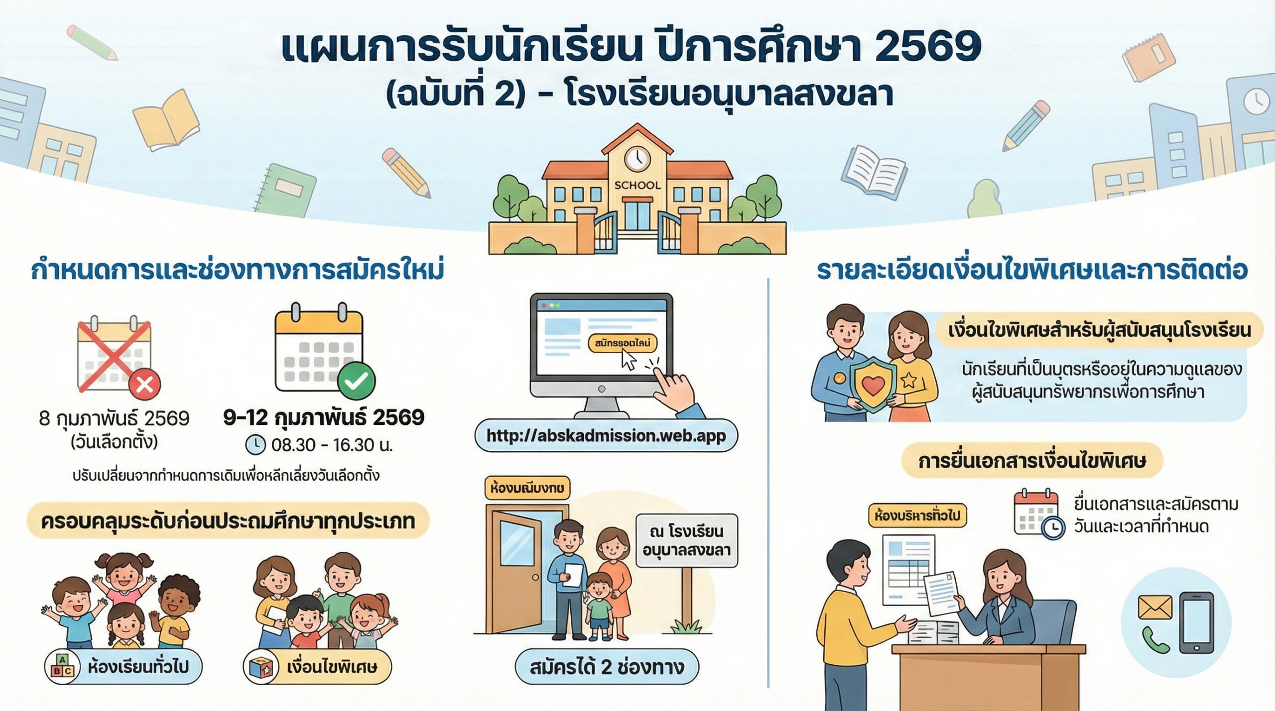 ประกาศโรงเรียนอนุบาลสงขลาเรื่อง การรับสมัครนักเรียนชั้นประถมศึกษาปีที่ 2-6