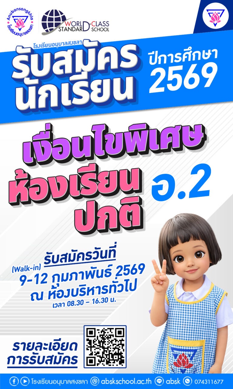 โรงเรียนอนุบาลสงขลาขอแสดงความยินดีกับการแข่งขันงานมหกรรมวิชาการห้องเรียนพิเศษภาษาอังกฤษภาคใต้ Southern English Medium Instruction Programme Open House 2025 ครั้งที่ 18 วันที่ 8 มกราคม 2569 ณ โรงเรียนท่าศาลาประสิทธิ์ศึกษา จ.นครศรีธรรมราช 13 เหรียญทอง 1 เหรียญเงิน