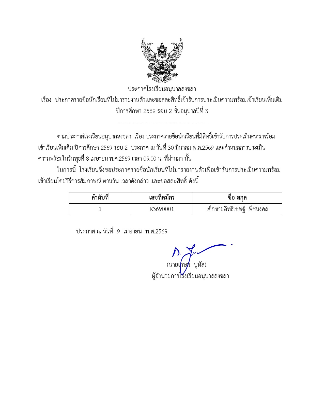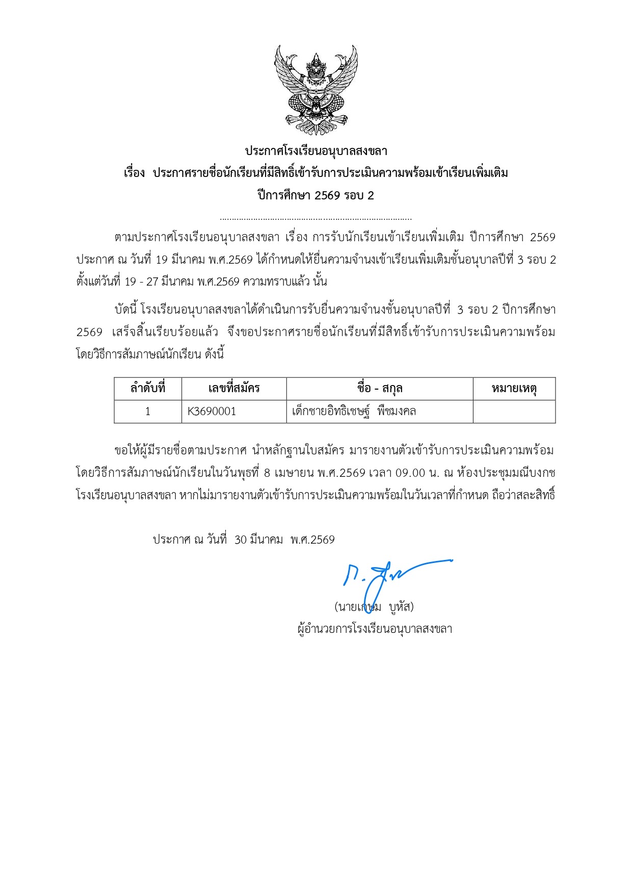 ✨ เกียรติยศแห่งศักดิ์ศรี ที่ชาวอนุบาลสงขลาภาคภูมิใจ ✨ โรงเรียนอนุบาลสงขลา ขอแสดงความยินดีกับนักเรียนชั้นประถมศึกษาปีที่ 6 ปีการศึกษา 2568 ที่ผ่านการทดสอบคัดเลือกเข้าศึกษาต่อระดับชั้นมัธยมศึกษาปีที่ 1 ปีการศึกษา 2569