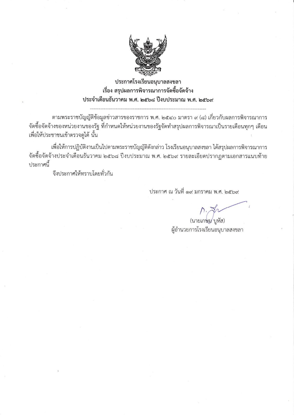 21 Jan กลุ่มบริหารงบประมาณประชาสัมพันธ์ ประกาศโรงเรียนอนุบาลสงขลา เรื่อง สรุปผลการพิจารณาจัดซื้อจัดจ้าง ประจำเดือนธันวาคม พ.ศ.2568 ปีงบประมาณ พ.ศ.2569 ประกาศโรงเรียนอน อ่านเพิ่ม