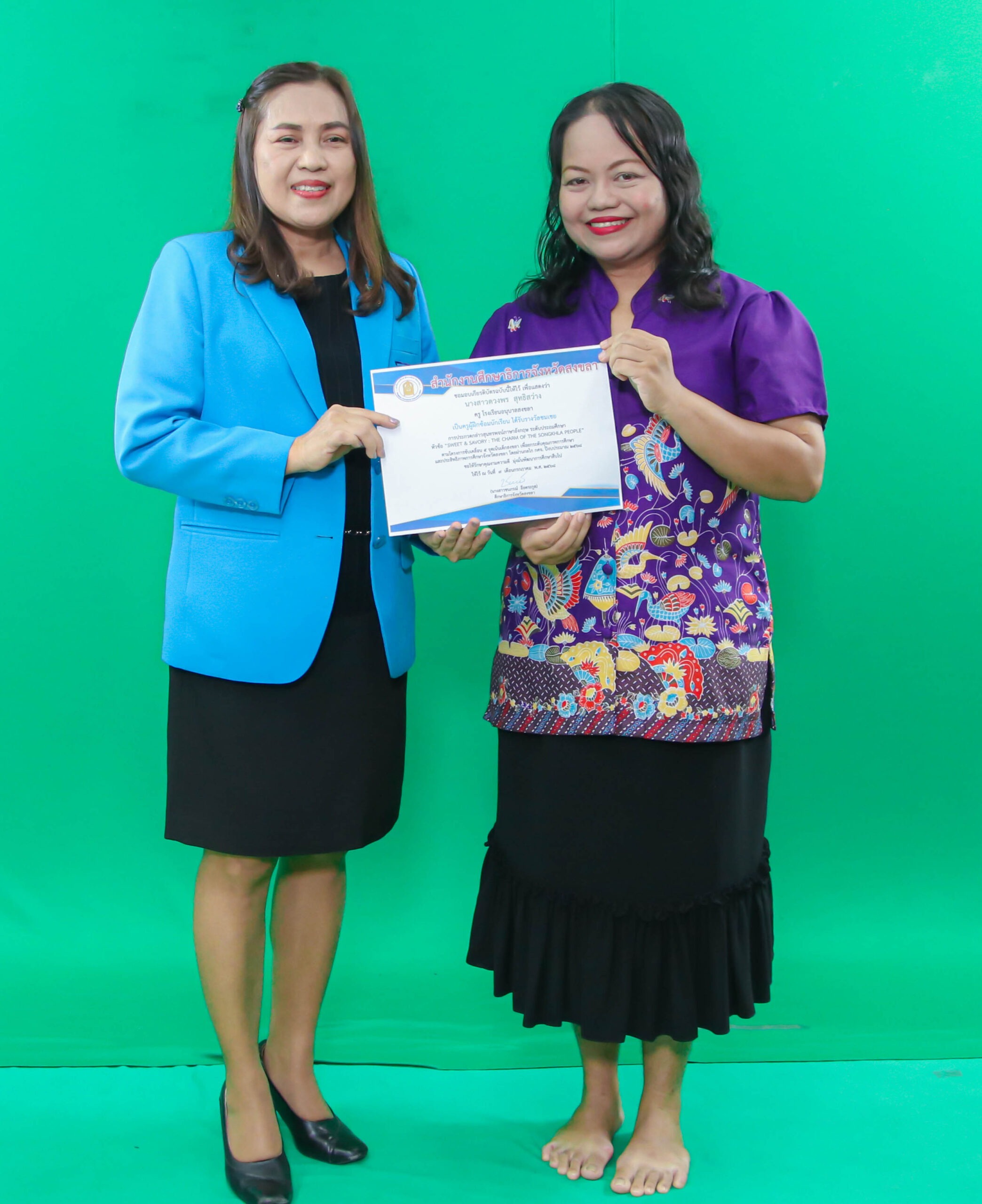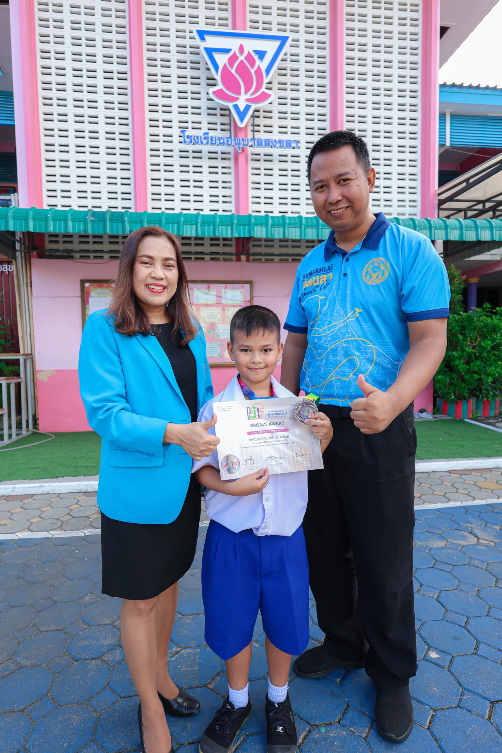 วันศุกร์ที่ 19 กันยายน 2568 นางมรกต ฉัตรจินดา รองผู้อำนวยการโรงเรียน รักษาการณ์ผู้อำนวยการโรงเรียนอนุบาลสงขลา มอบเกียรติบัตรประกวดกล่าวสุนทรพจน์ภาษาอังกฤษ ระดับชั้นประถมศึกษาตามโครงการขับเคลื่อนการพัฒนาคุณภาพผู้เรียน 5 จุดเน้นเด็กสงขลา เพื่อยกระดับ คุณภาพการศึกษาและประสิทธิภาพการศึกษาจังหวัดสงขลา โดยผ่านกลไก กศจ. ประจำปีงบประมาณ พ.ศ.2568 หัวข้อ sweet and savory:the charm of Songkhla people รายการจากเวที National Junior Informatics Olympiad 2025 เด็กชายพัชรกกร จันทร์สุย ชั้นประถมศึกษาปีที่ 3/6 SMC นักเรียนโรงเรียนอนุบาลสงขลา