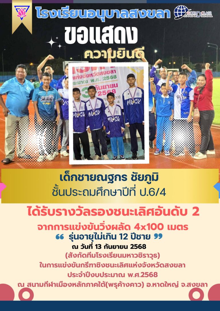 โรงเรียนอนุบาลสงขลาขอแสดงความยินดีกับ เด็กชายพัชรกกร จันทร์สุย ชั้นประถมศึกษาปีที่ 3/6 SMC ที่คว้า รางวัลเหรียญทองแดง (Bronze Award) จากเวที National Junior Informatics Olympiad 2025 🖥️🥉