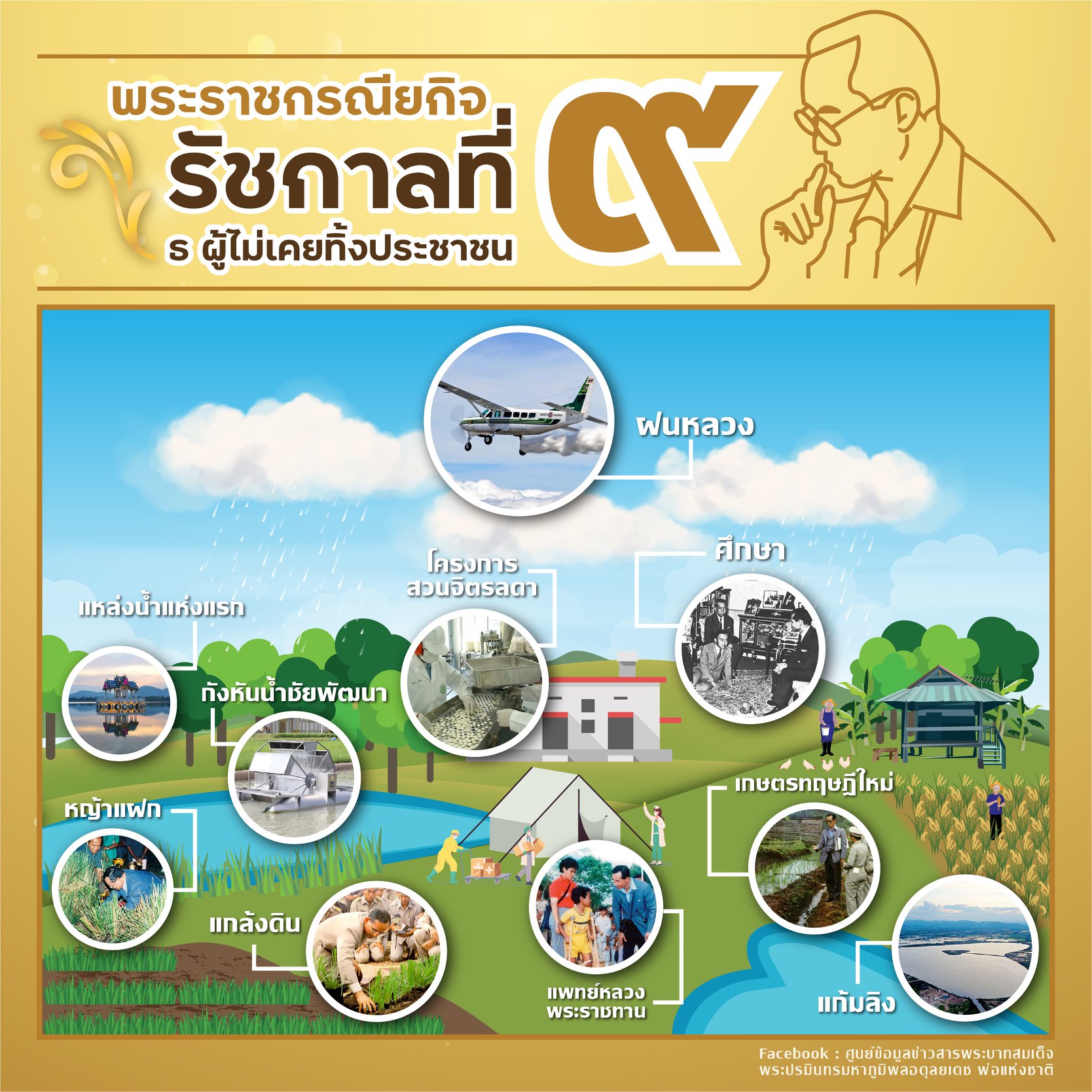 ตลอดระยะเวลาที่ทรงครองสิริราชสมบัติ พระองค์ทรงบำเพ็ญพระราชกรณียกิจนานัปการ ด้วยพระวิริยอุตสาหะและพระปรีชาสามารถ เพื่อประโยชน์สุขของพสกนิกรชาวไทย ทรงเป็นดั่งแสงสว่างนำทาง เป็นศูนย์รวมดวงใจ และเป็นแบบอย่างแห่งความเสียสละ ความเพียร และความพอเพียง