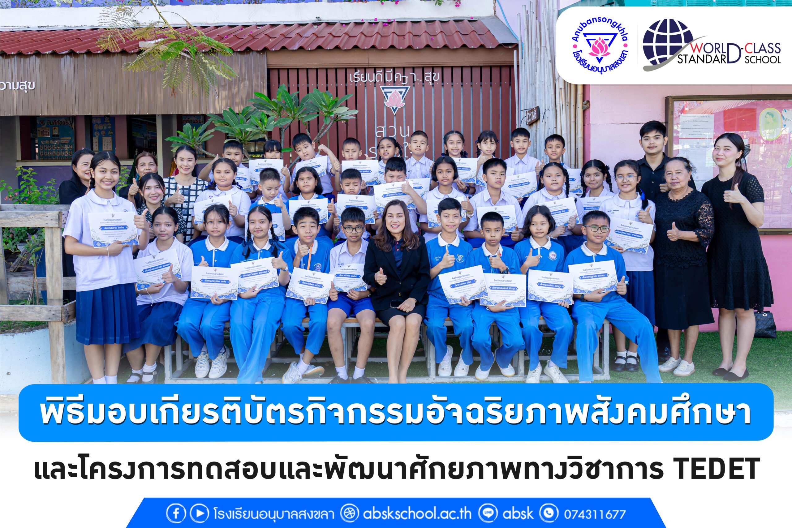 โครงการทดสอบและพัฒนาศักยภาพทางวิชาการ TEDET เพื่อเชิดชูเกียรตินักเรียนที่มีความสามารถโดดเด่นด้านสังคมศึกษา คณิตศาสตร์ และวิทยาศาสตร์ แสดงให้เห็นถึงความตั้งใจ ความพากเพียร และศักยภาพทางวิชาการที่เป็นเลิศ