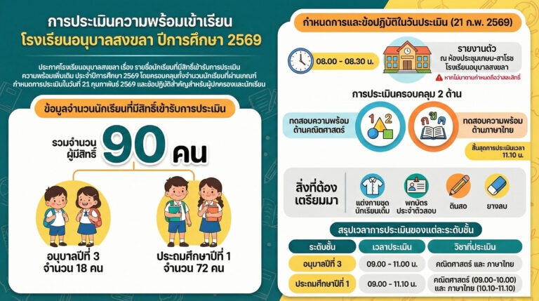 ประกาศการจัดนักเรียนเข้าชั้นเรียน ชั้นอนุบาลปีที่ 2 ห้องเรียนปกติ ปีการศึกษา 2569